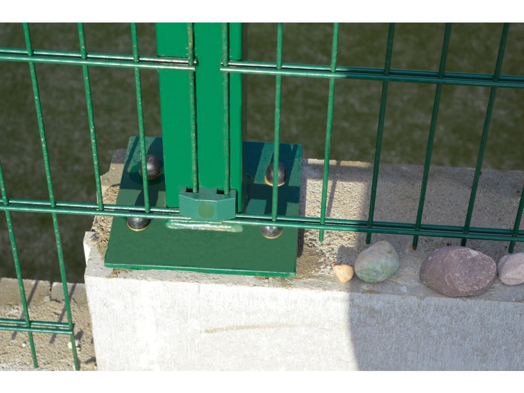 Sloupky jsou nasazeny na patky. Takto je možné je osadit na betonový povrch.