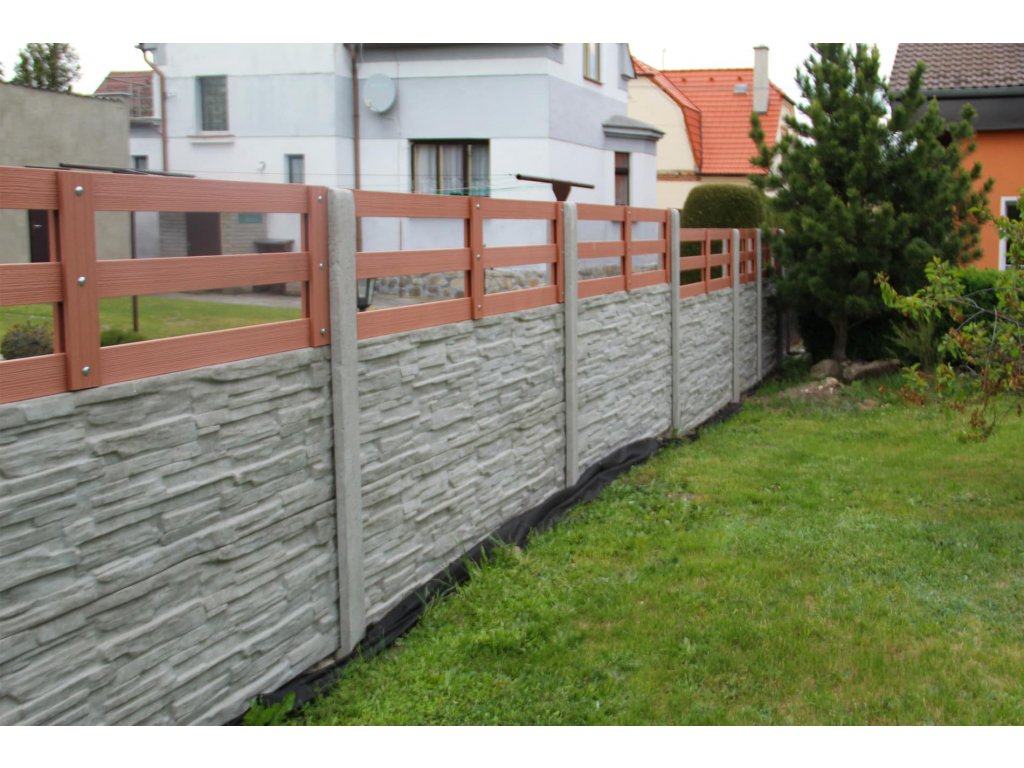 Betonový plot v kombinaci s WPC plotovkami je bezúdržbovým řešením.