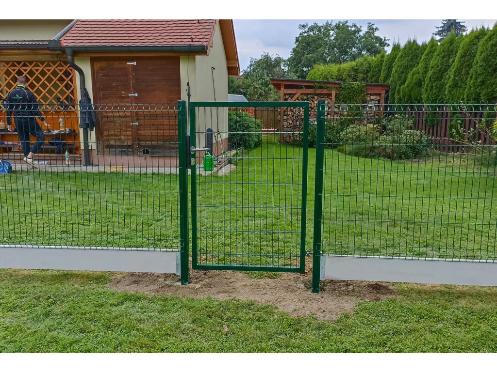 Ve Stříbře jsme montovali 3D plotové panely zelené barvy s podhrabovými deskami a brankou.