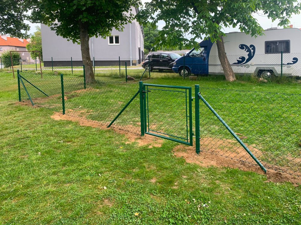 V Trnové jsme montovali 2D plotové panely s podhrabovými deskami a klasické poplastované čtyřhranné pletivo.