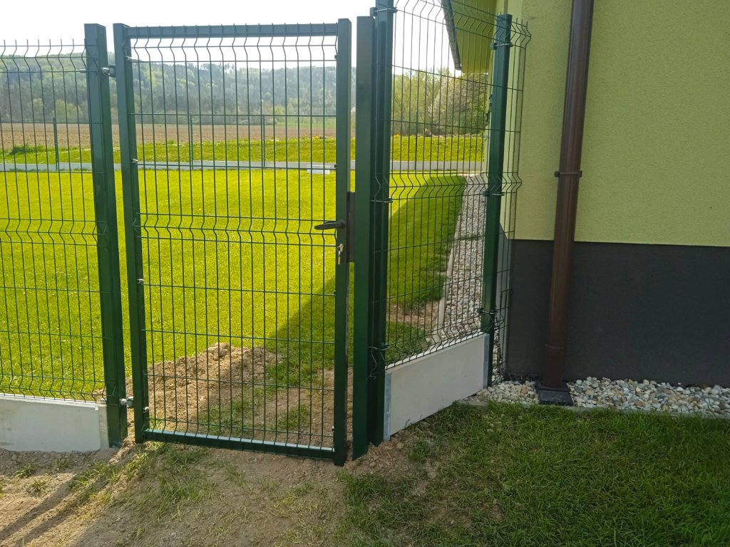 Ve Stříbře jsme montovali 3D plotové panely zelené barvy s podhrabovými deskami a brankou.