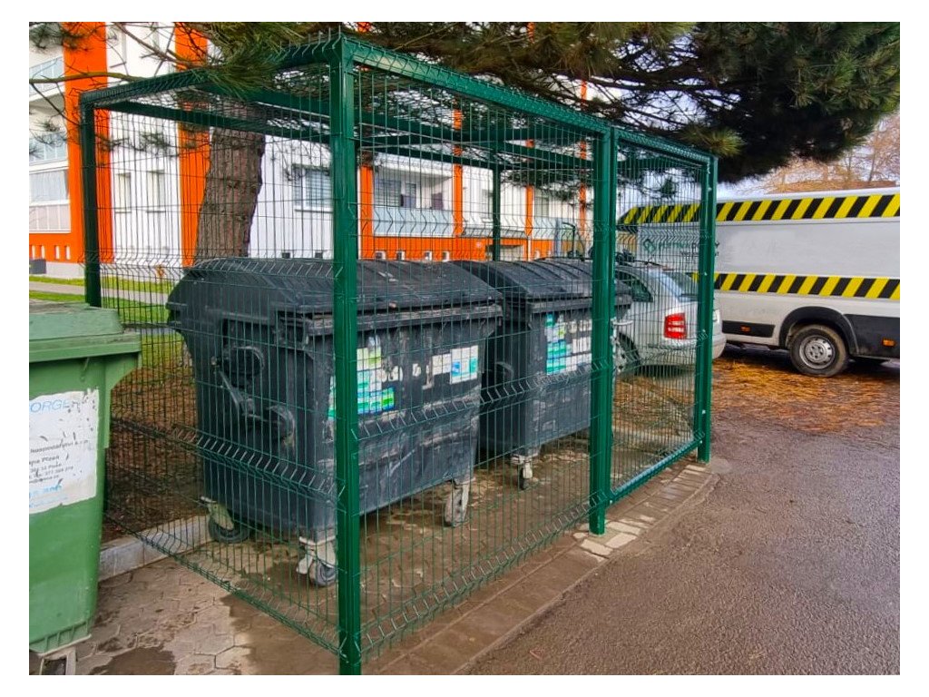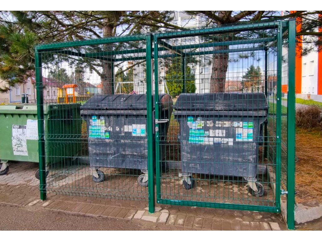 Ve Blovicích jsme montovali oplocení kolem popelnic ze zelených 3D plotových panelů.