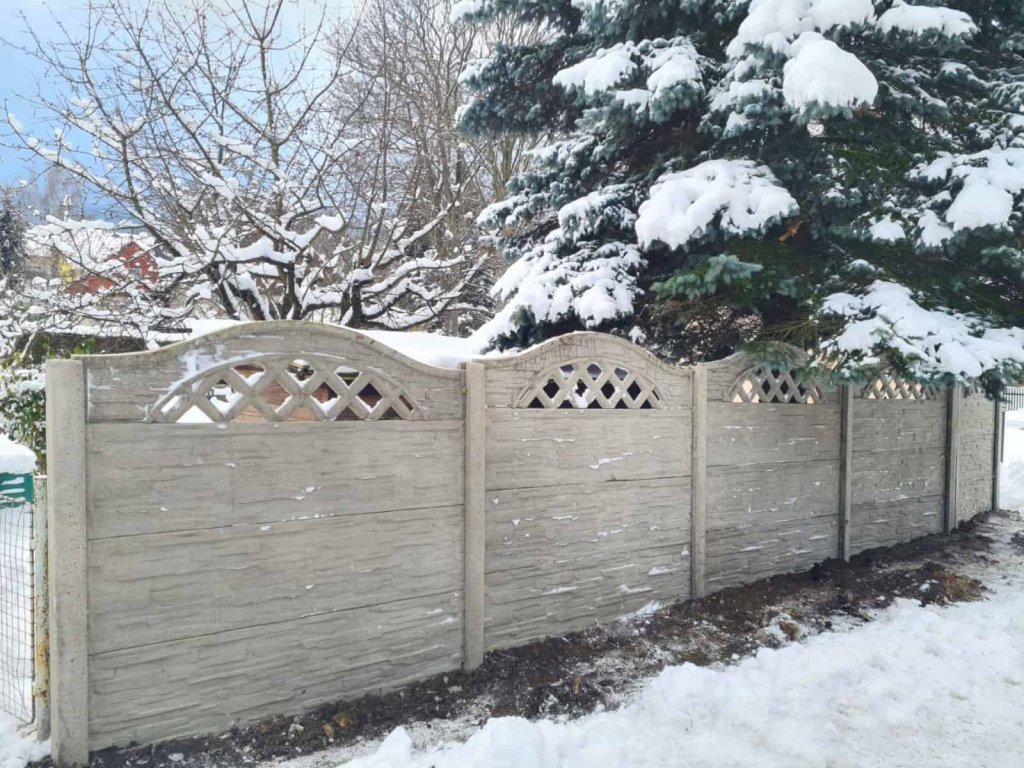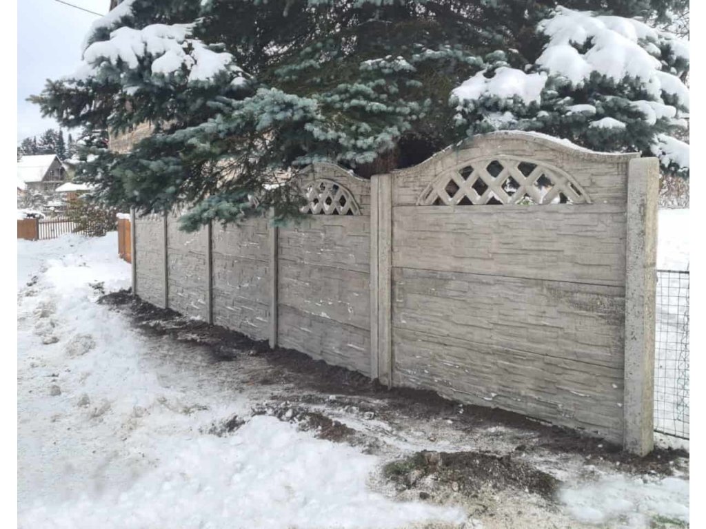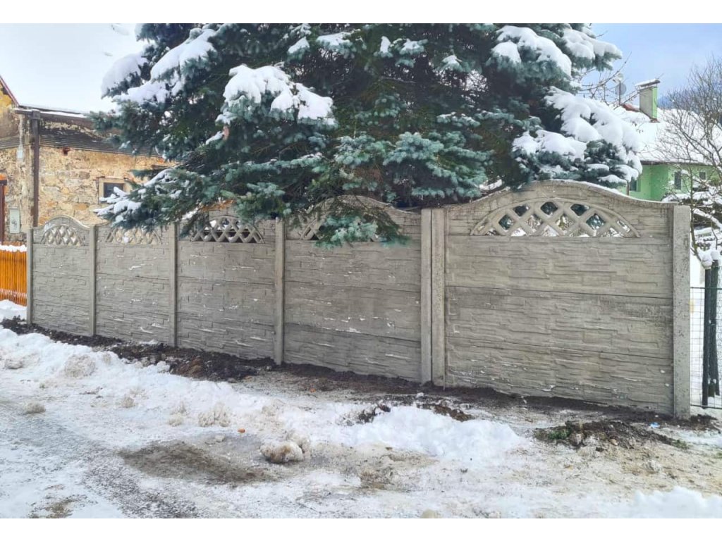 V Liberci jsme montovali plot z betonových desek. Ve vrchní části plotu jsou betonové desky doplněné plotovou mřížkou.