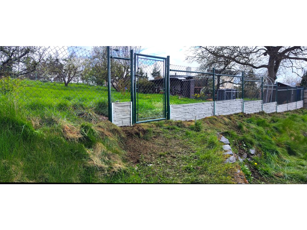 Pletivo, sloupky, betonové desky, branka, držák desky na míru.
