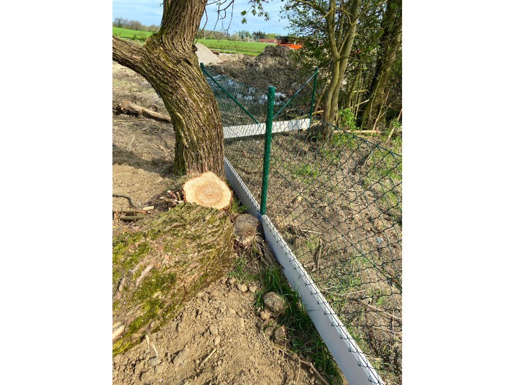 V Suchém Vrbném jsme montovali dvojí řadu podhrabových desek se čtyřhranným pletivem.