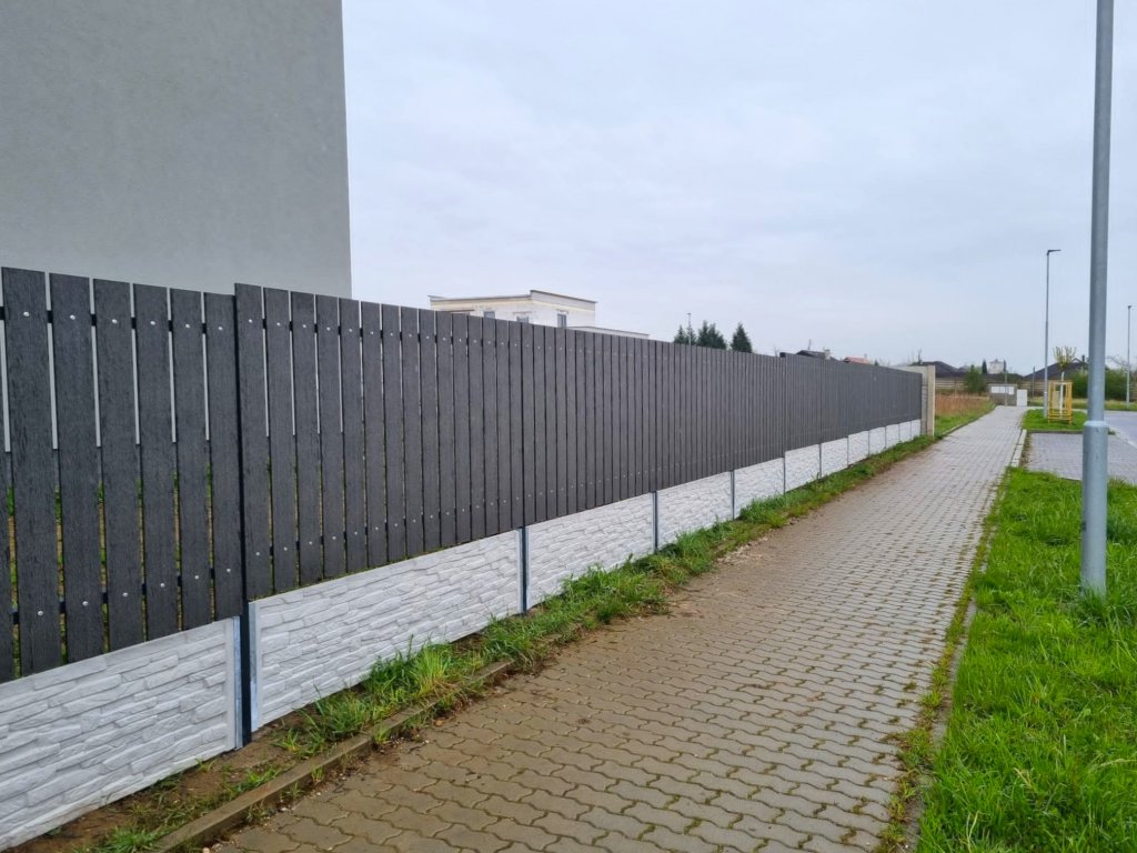 WPC plotovky, betonové desky, sloupky.