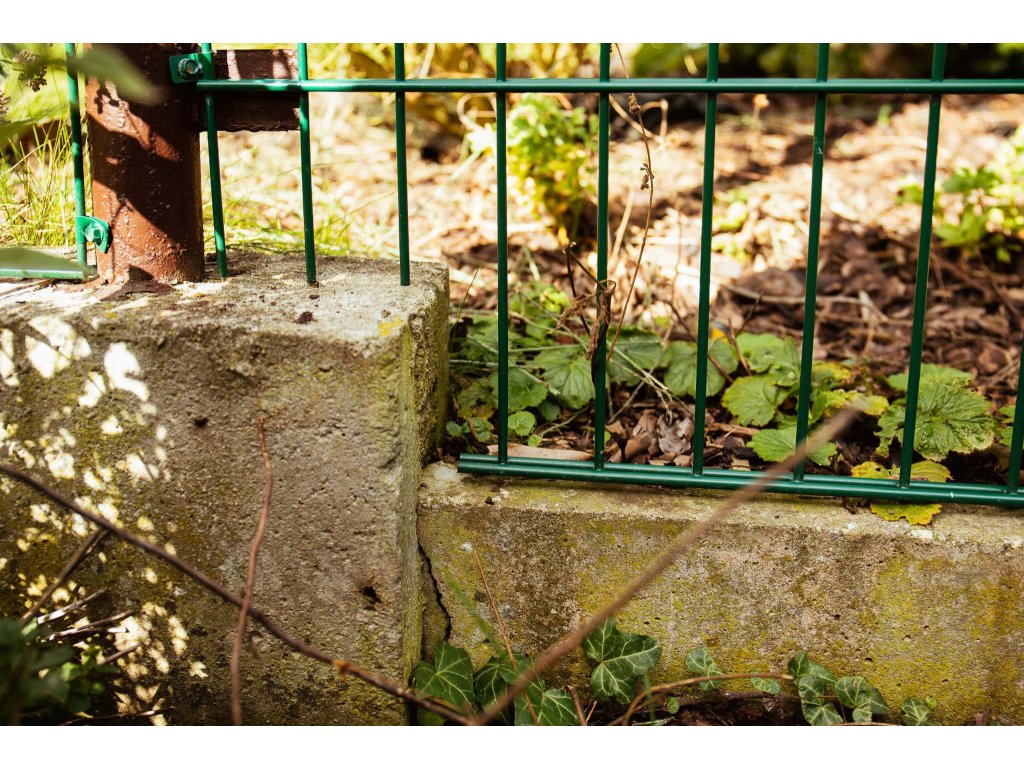| Specifika montáže: | stavba ve svahu, velmi nízké oplocení, montováno na podezdívce, montáž na původní sloupky |