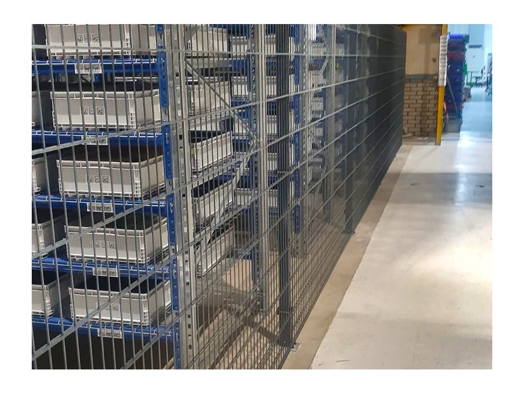 V Příbrami jsme montovali plot z 2D plotových panelů ukotvených na patkách. Oplocení bylo namontováno uvnitř haly.