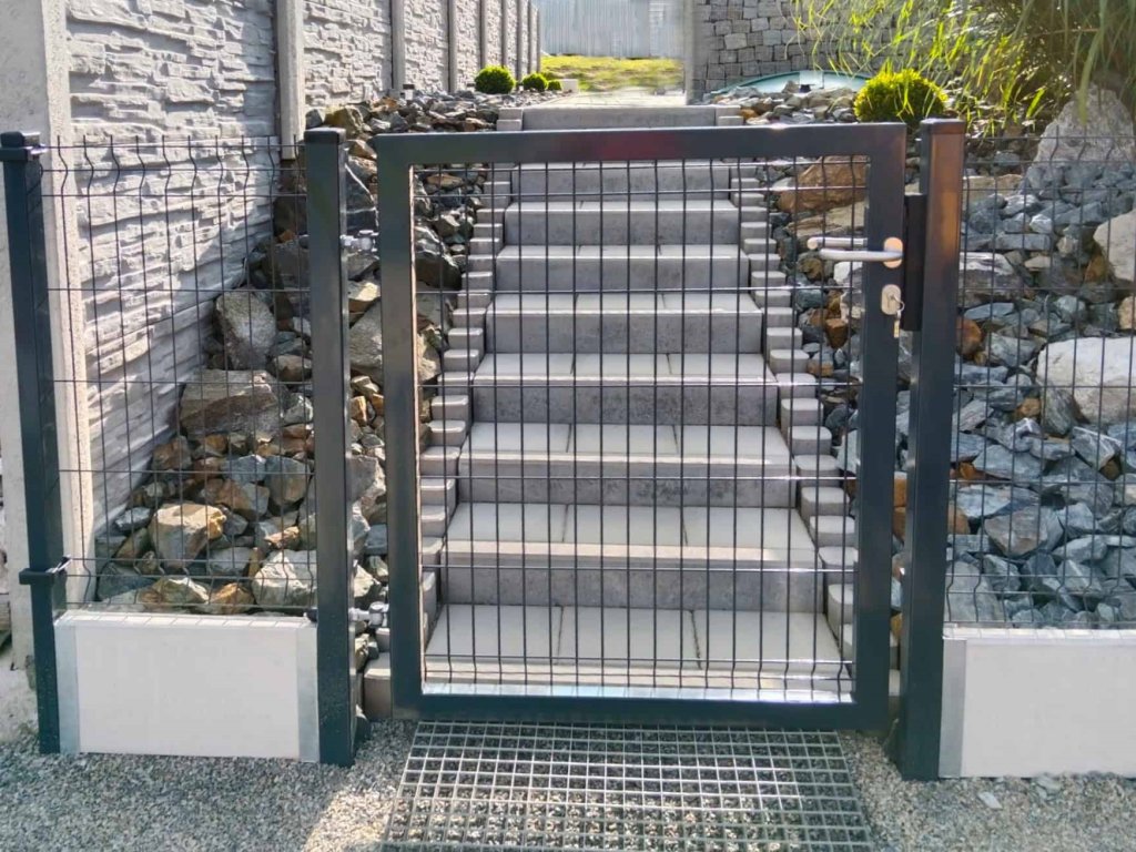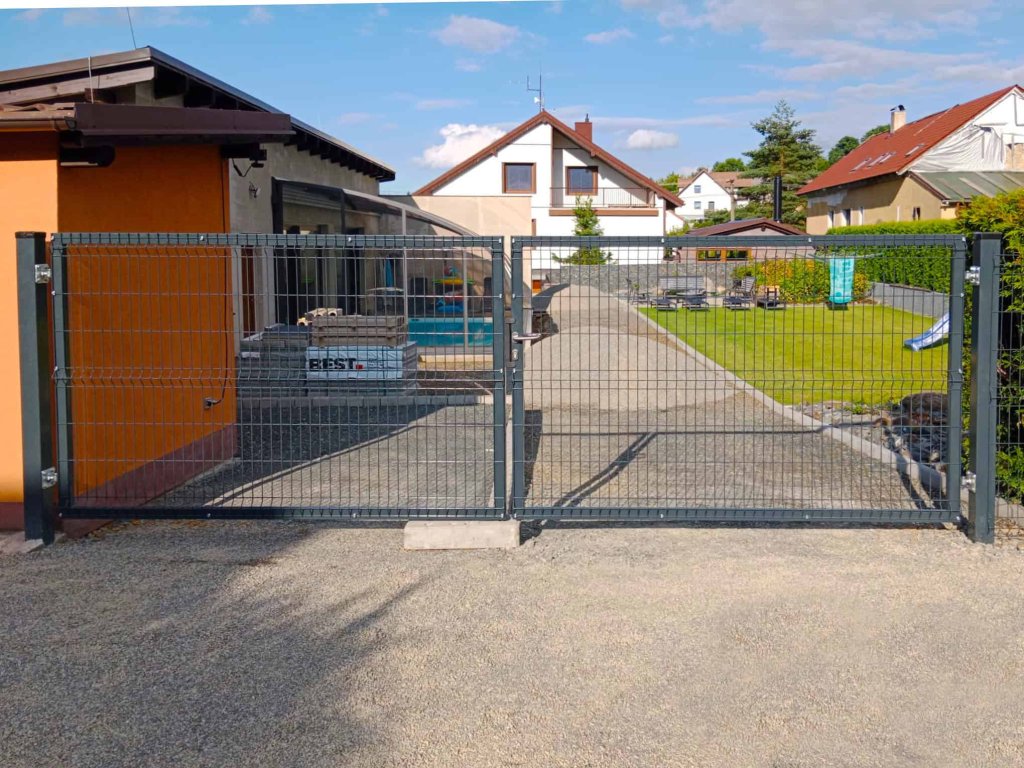 3D plotové panely, podhrabové desky, sloupky hranaté, sloupky kulaté, vzpěry, čtyřhranné pletivo, držáky podhrabových desek, branka, brána.