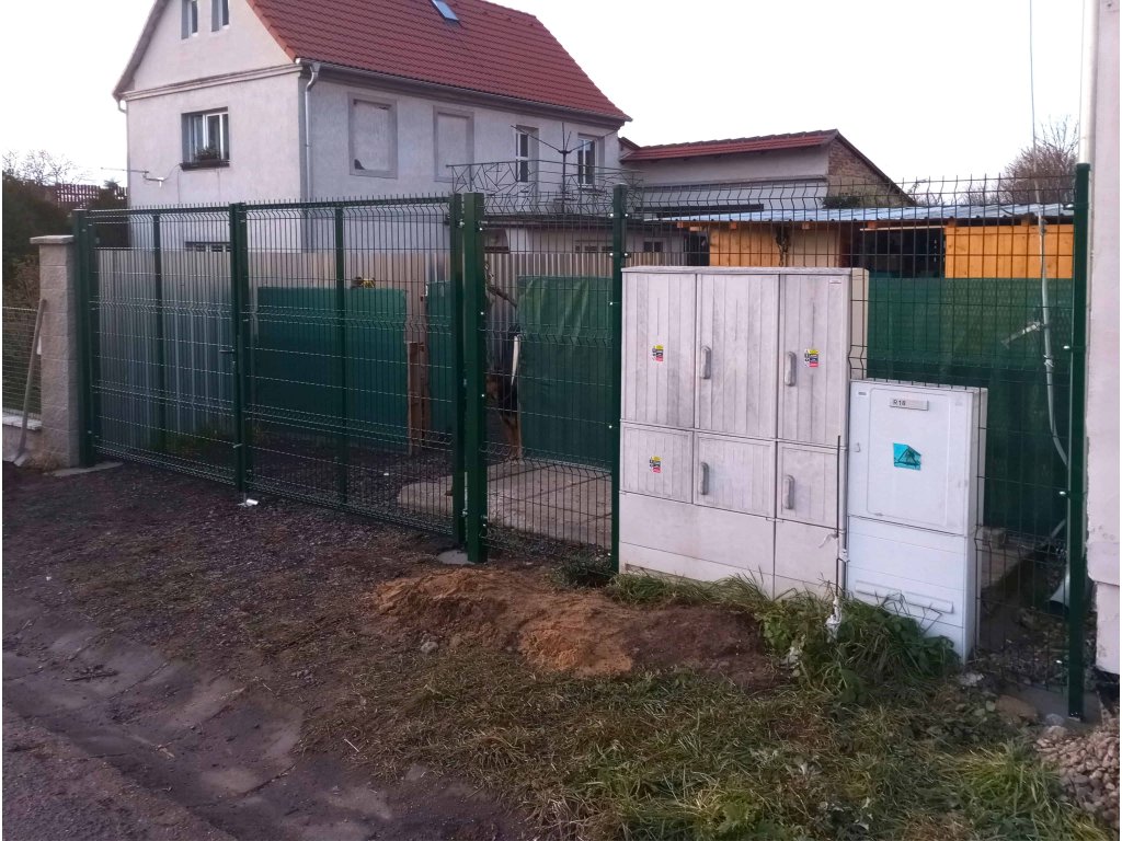 V obci Hoštka nedaleko Litoměřic jsme montovali plot z 3D plotových panelů. Součástí oplocení je branka a dvě dvoukřídlé brány.