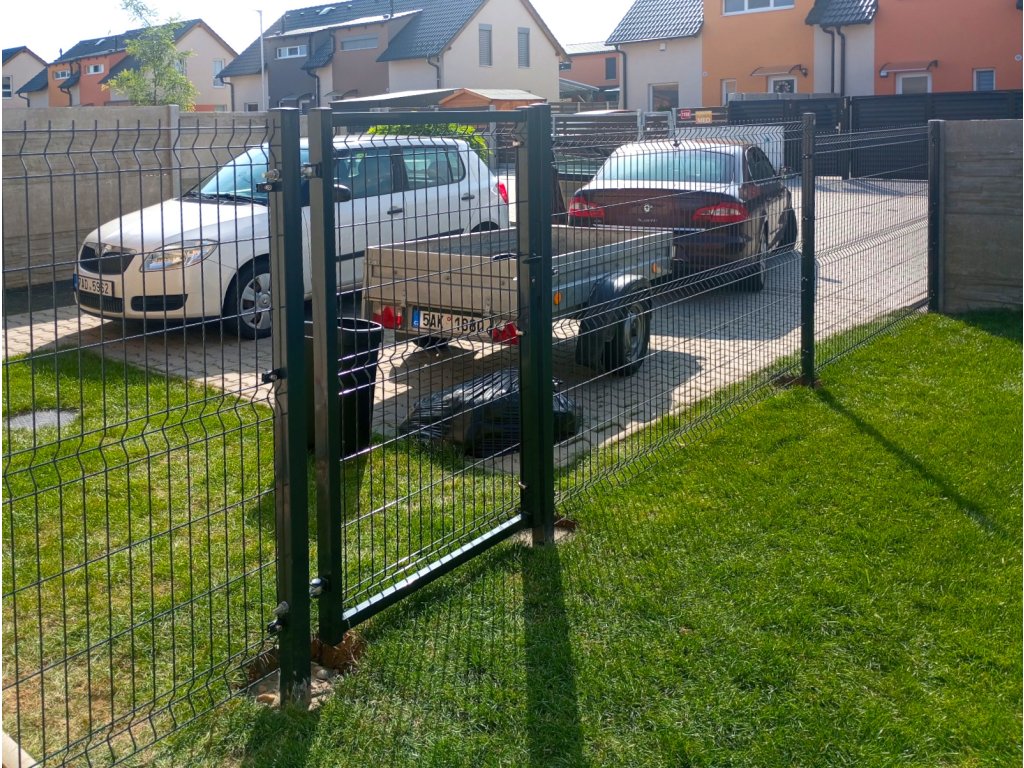 3D plotové panely, sloupky, příchytky panelů koncové, příchytky průběžné, branka.