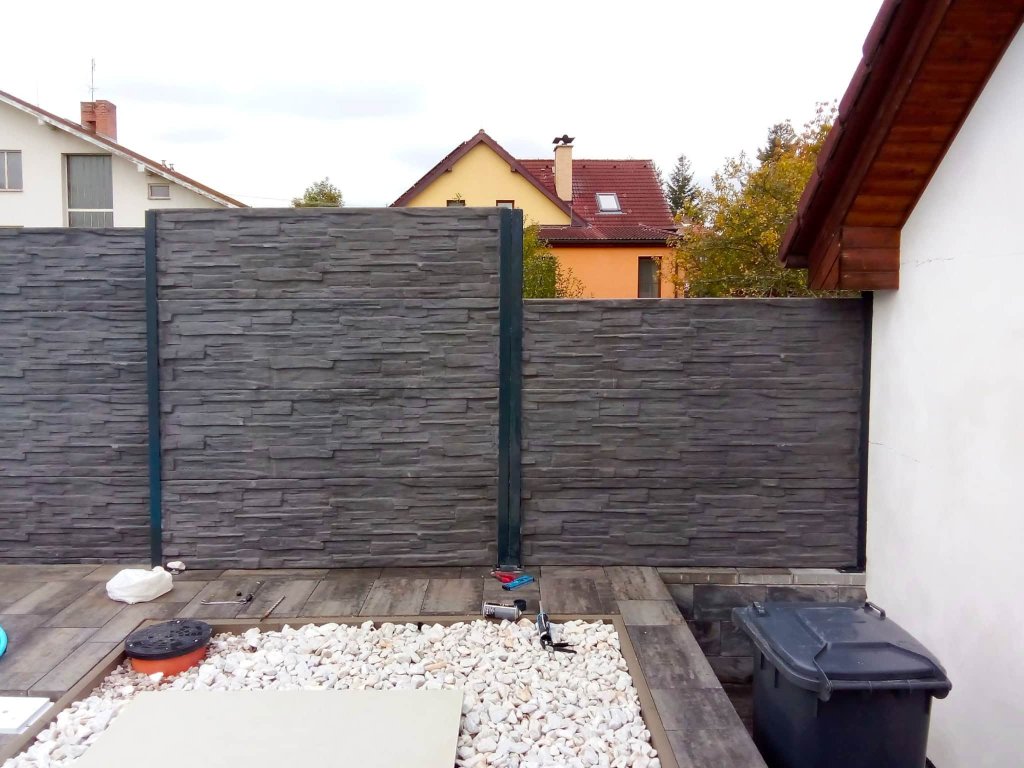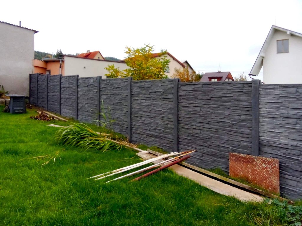 Ve Starém Plzenci jsme montovali plot z betonových desek v barvě grafit.