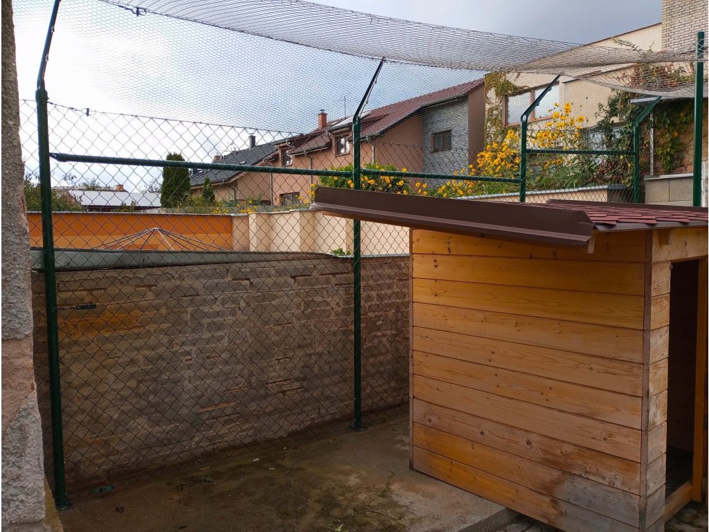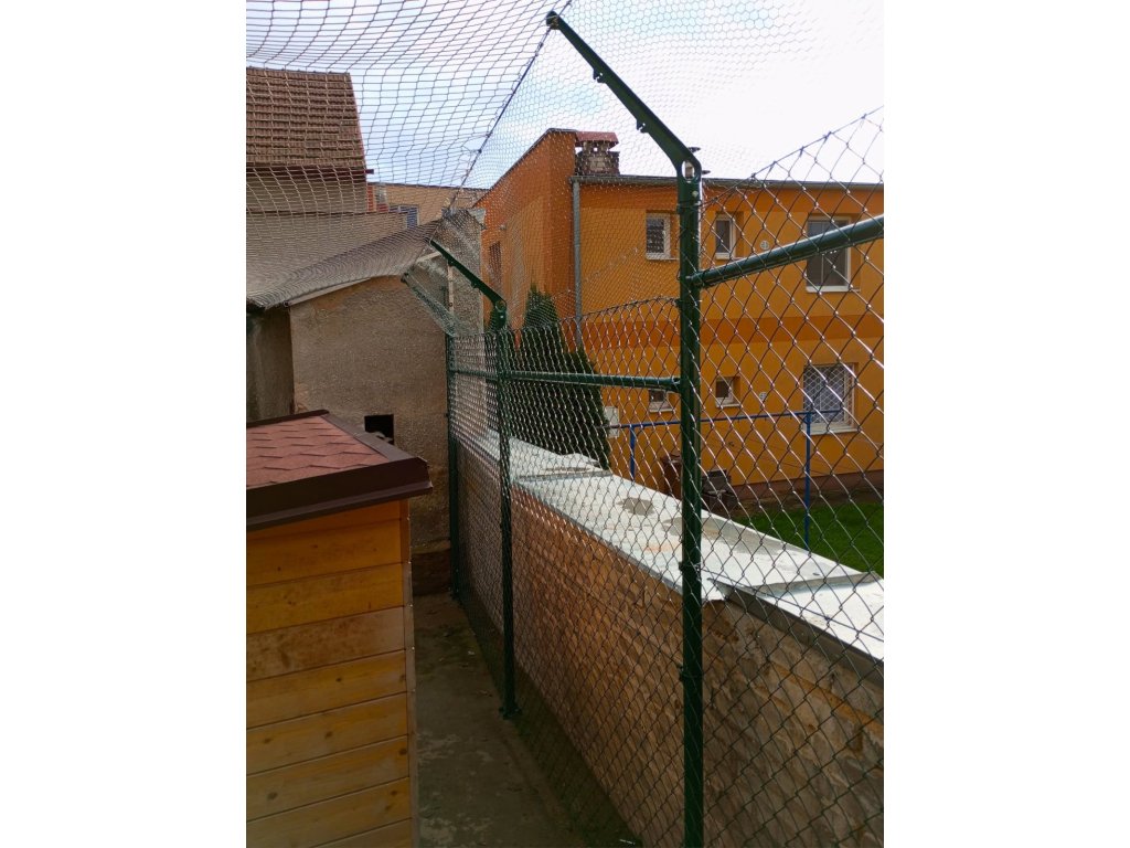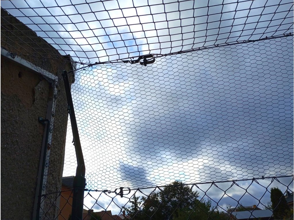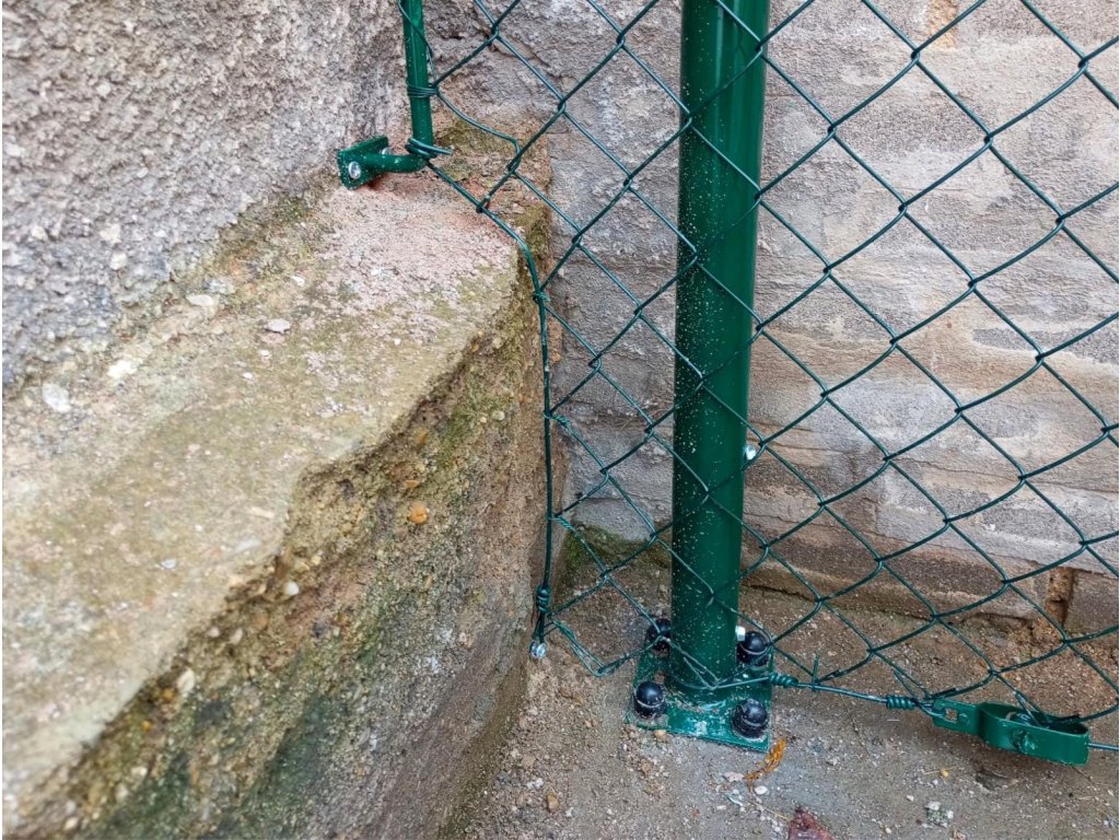 Ve Slaným jsme montovali plot ze čtyřhranného pletiva. Na sloupky byly připevněny bavolety a na ty následně králičí pletivo. Tento systém oplocení zabraňuje kočce úniku z pozemku.
