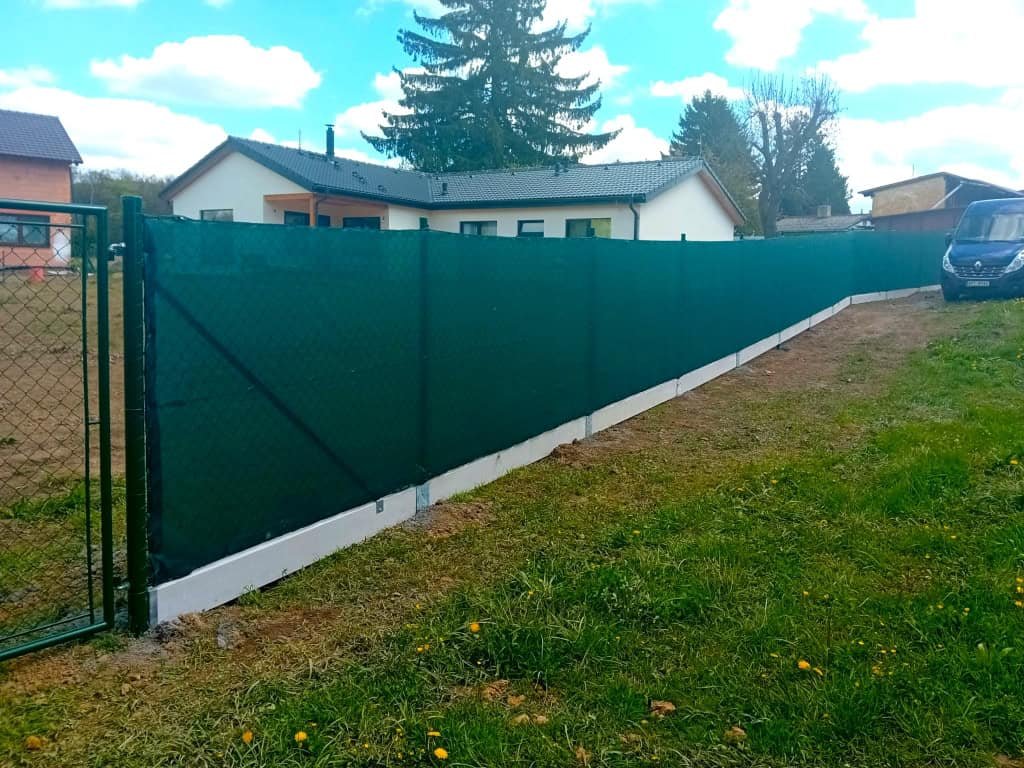 V Mirošově jsme montovali oplocení z čtyřhranného pletiva, podhrabových desek a stínící tkaniny.