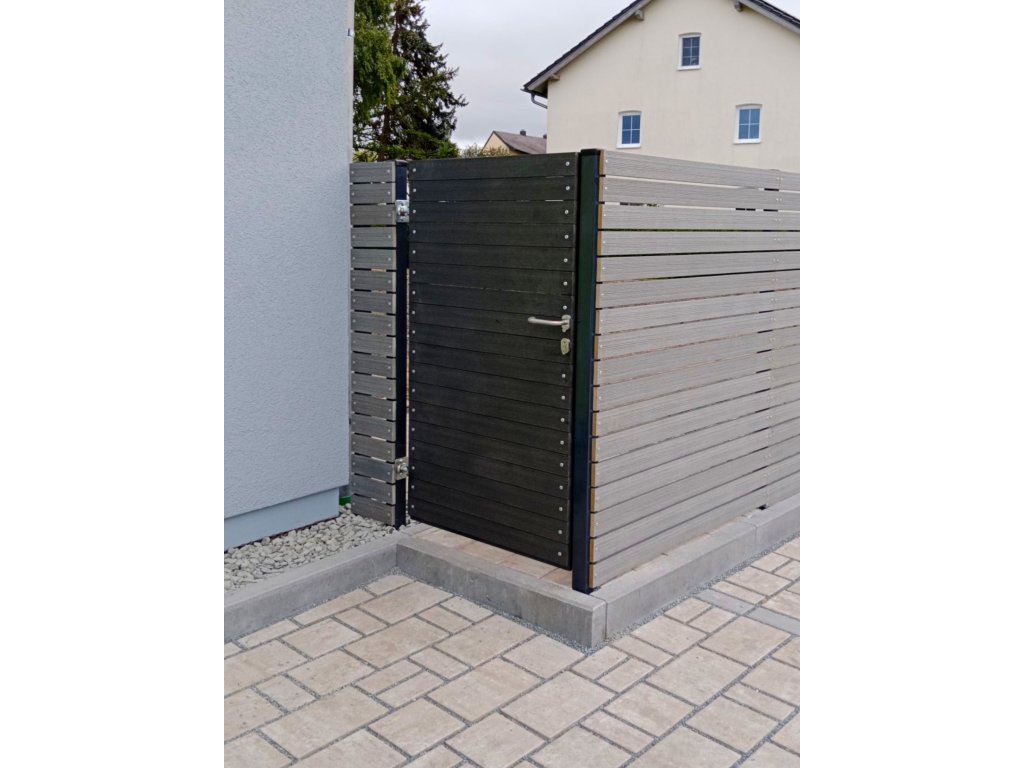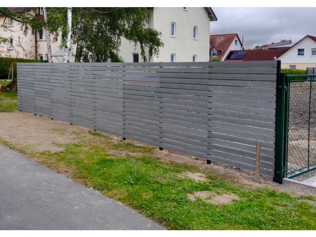 U Chebu jsme montovali oplocení z z šedých WPC plotovek.