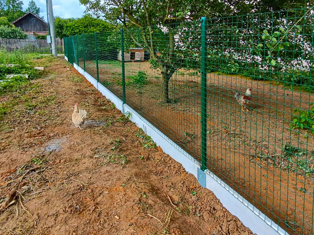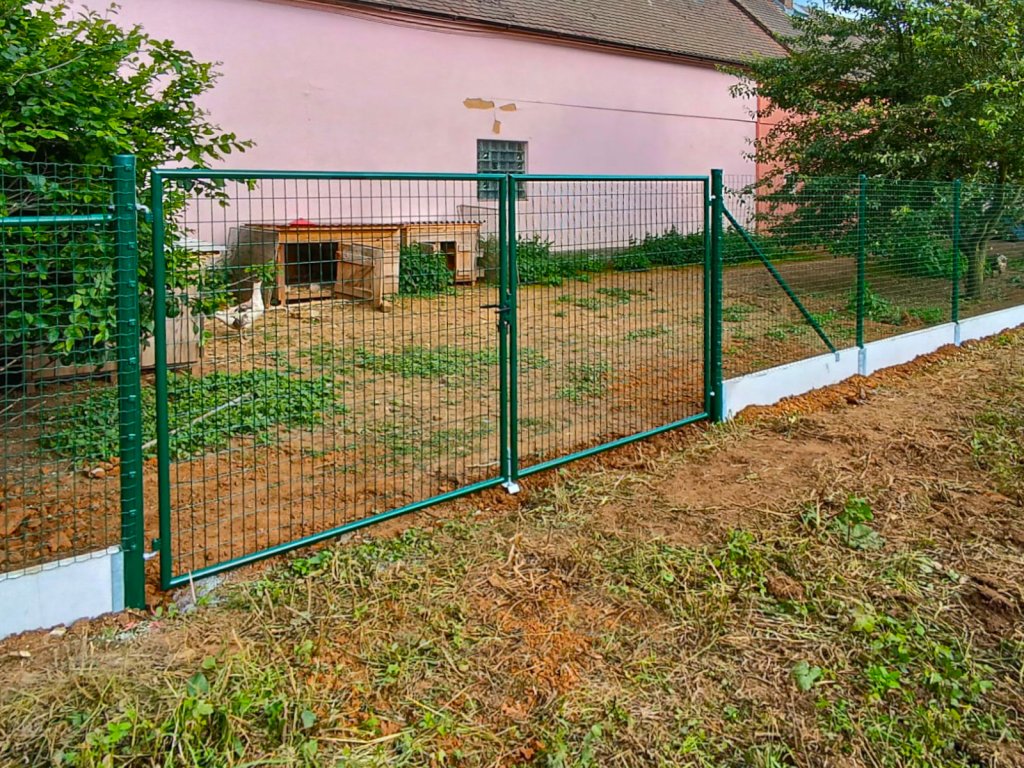 V Líšťanech jsme montovali oplocení ze svařovaného pletiva a podhrabových desek. Součástí oplocení je zahradní branka a dvoukřídlá brána.
