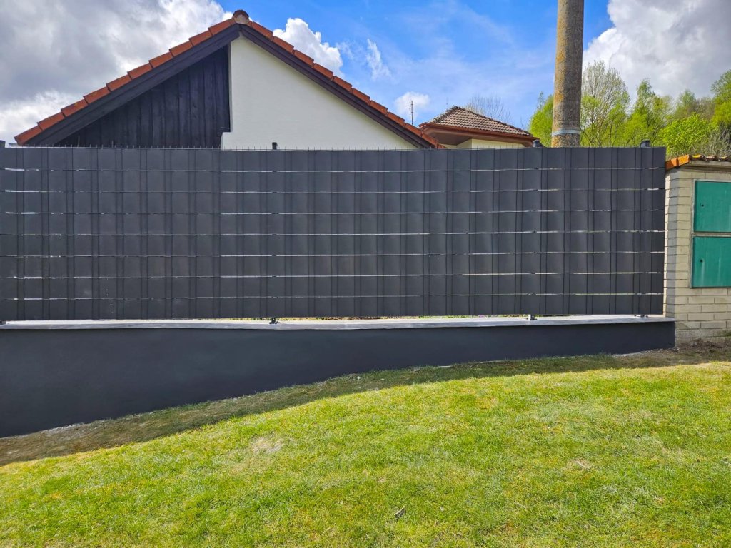 V Přimdě, v okrese Tachov, jsme montovali plot z 2D plotových panelů a stínících pásů. Plot byl ukotven na původní podezdívku.