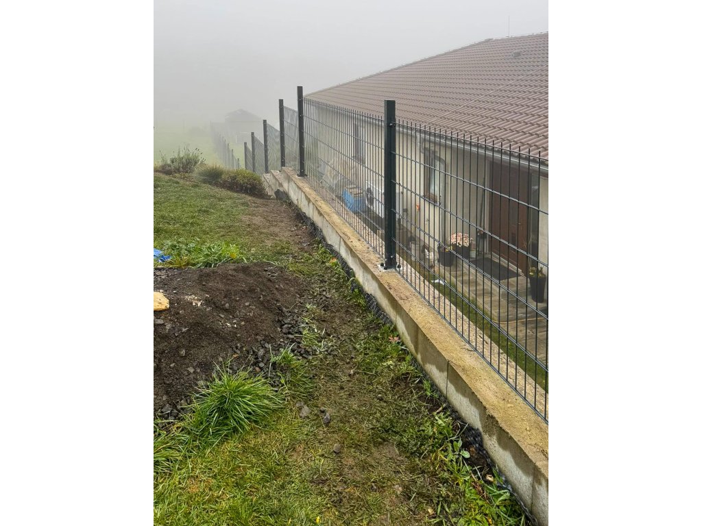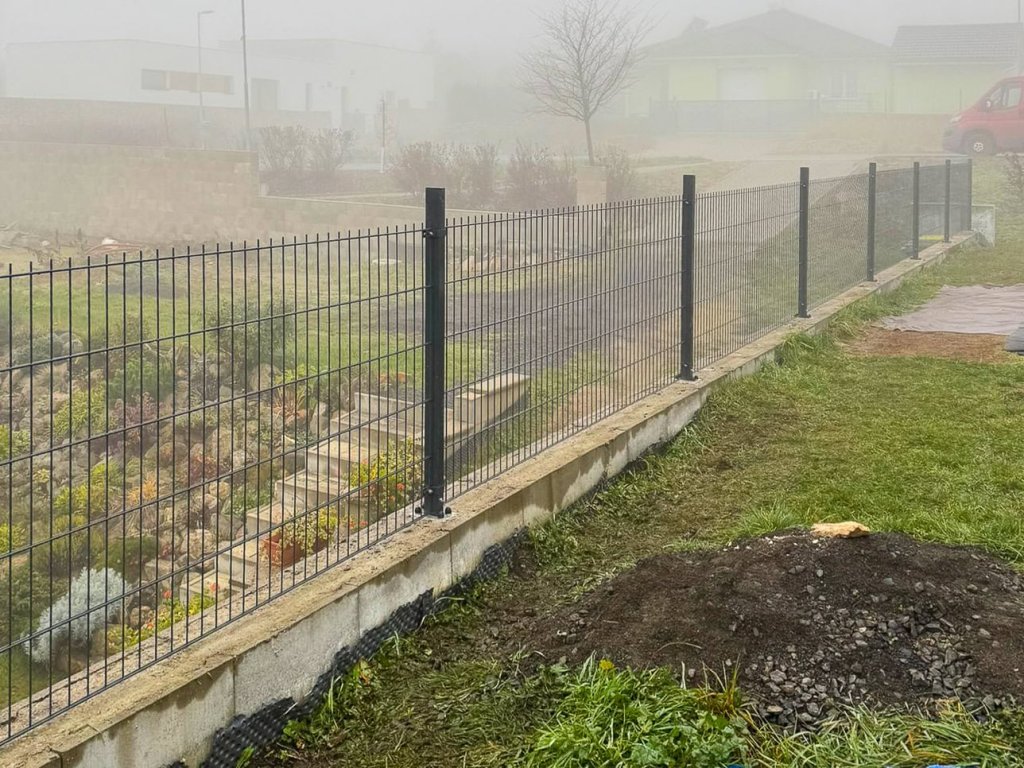 Nedaleko Chomutova jsme montovali plot z 2D plotových panelů na původní podezdívku.