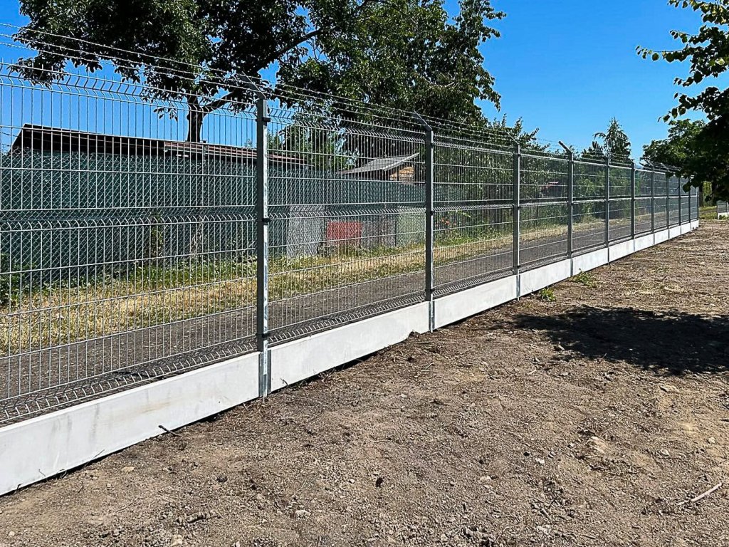 V Chomutově jsme montovali plot z pozinkovaných 3D plotových panelů a čtyřhranného pletiva. Plot byl pro větší zabezpečení ve vrchní části doplněn o ostnaté dráty natažené ve třech řadách na bavolety.