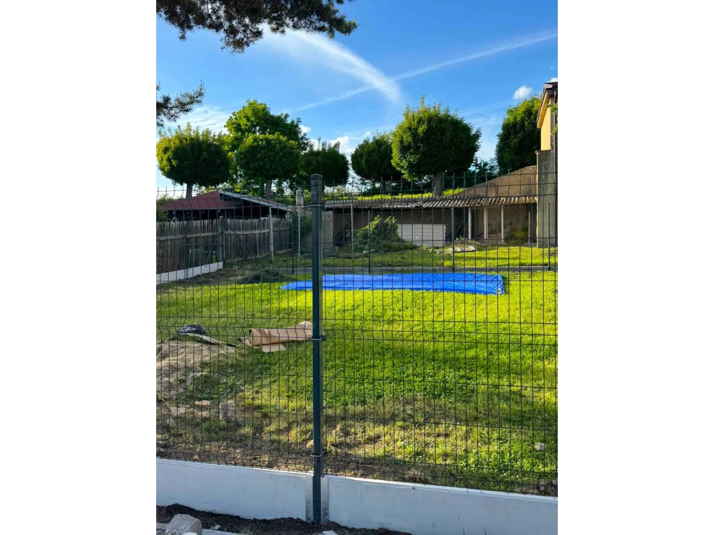 Ve Stochově, v okrese Kladno, jsme montovali plot z 3D plotových panelů a podhrabových desek. Na části oplocení jsme namontovali plot ze čtyřhranného pletiva.