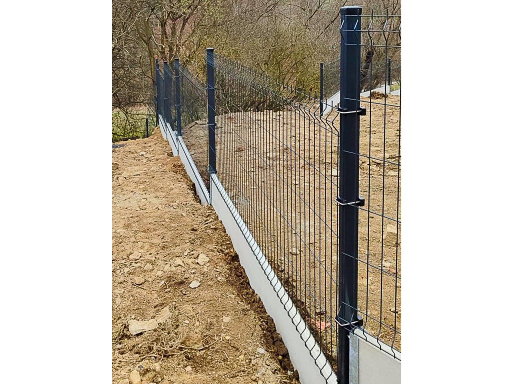 3D plotové panely 103 cm a 123 cm, sloupky, podhrabové desky, držáky podhrabových desek, příchytky panelů, čtyřhranné pletivo, kulaté sloupky, vzpěry.