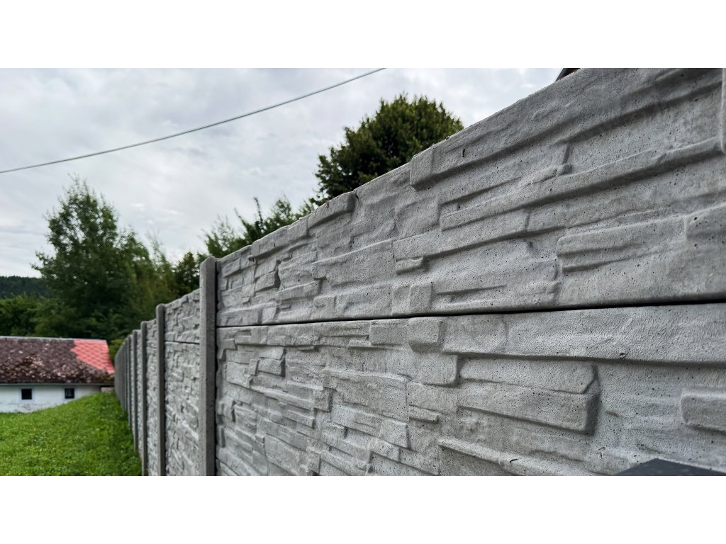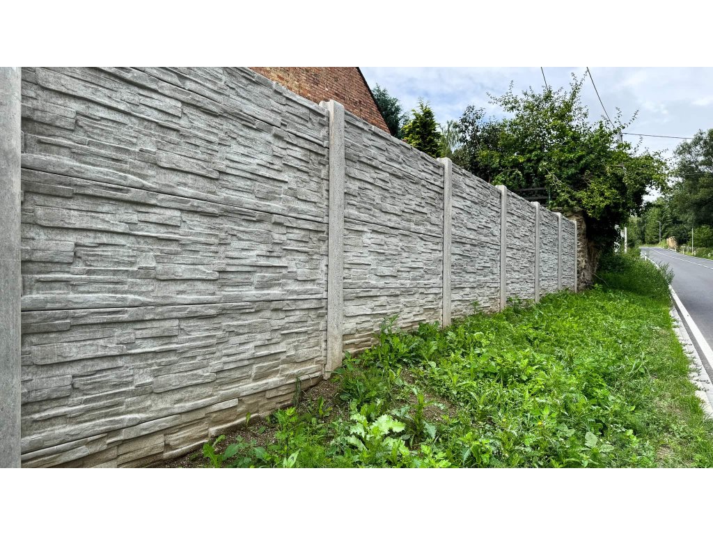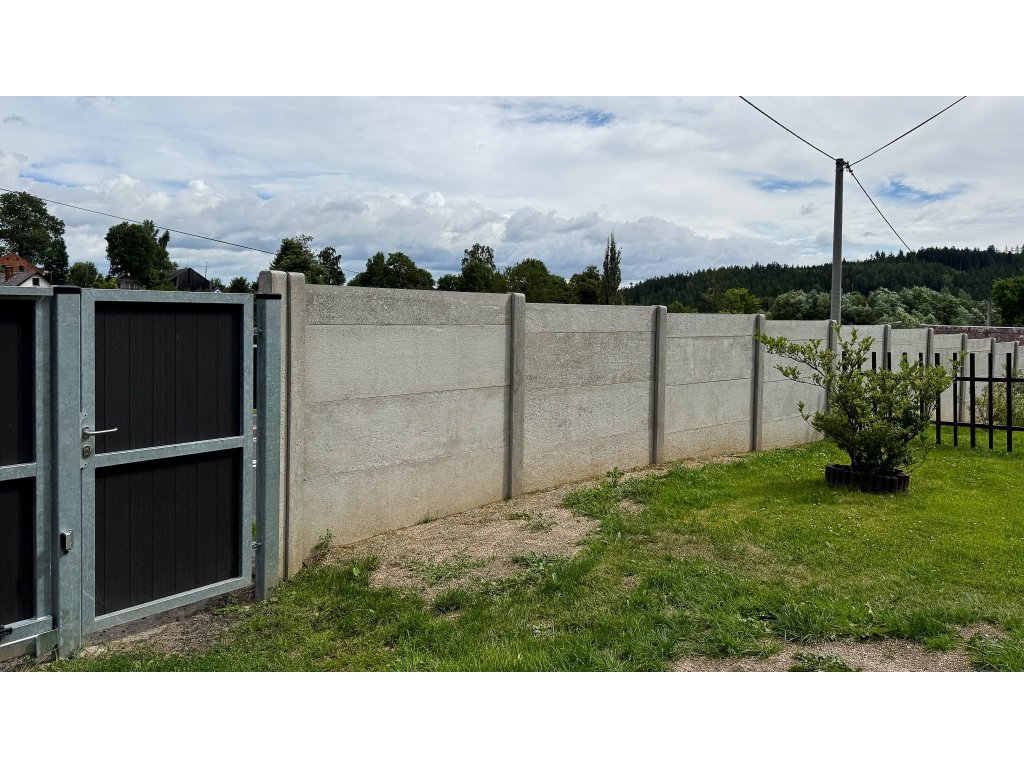 Betonové desky 50 cm vysoké, 25 cm vysoké, betonové sloupky průběžné, koncové, WPC plotovky, branka a brána na míru.