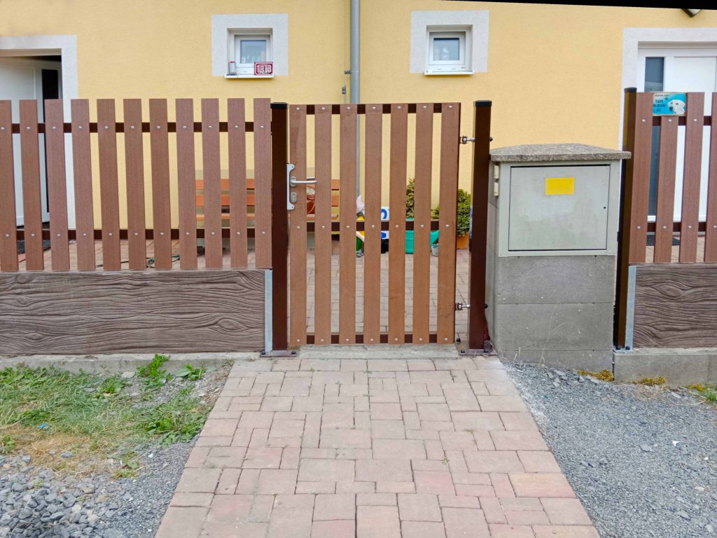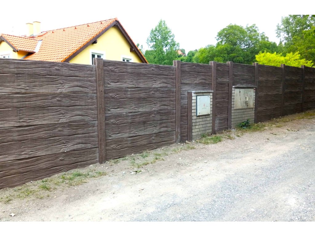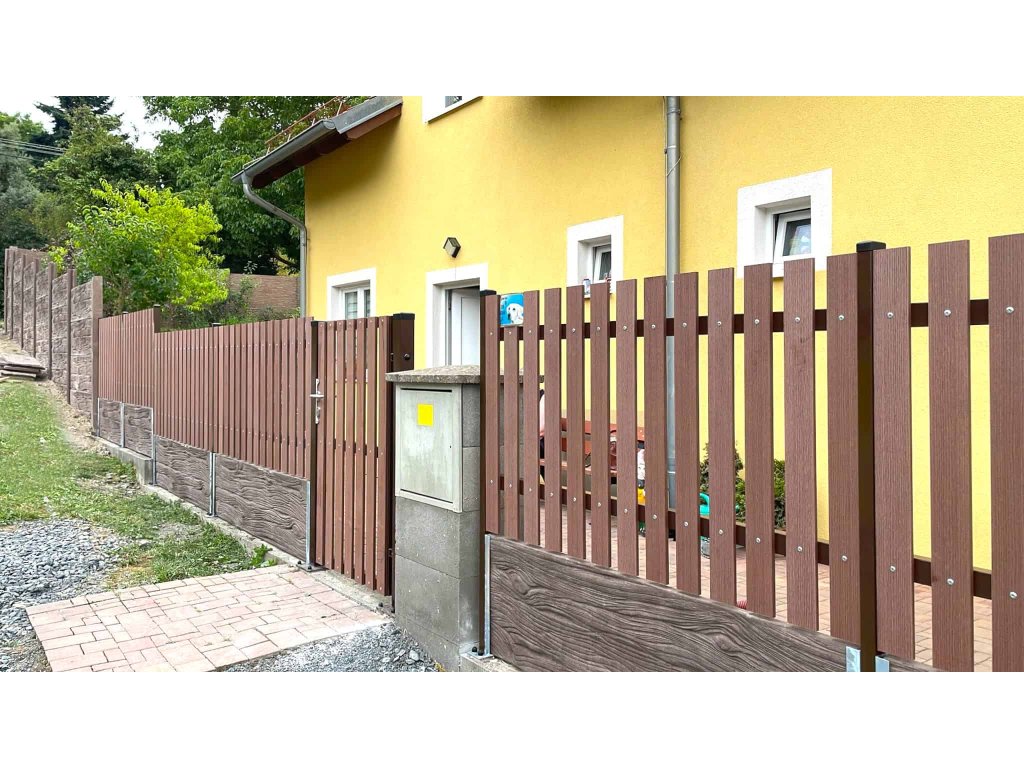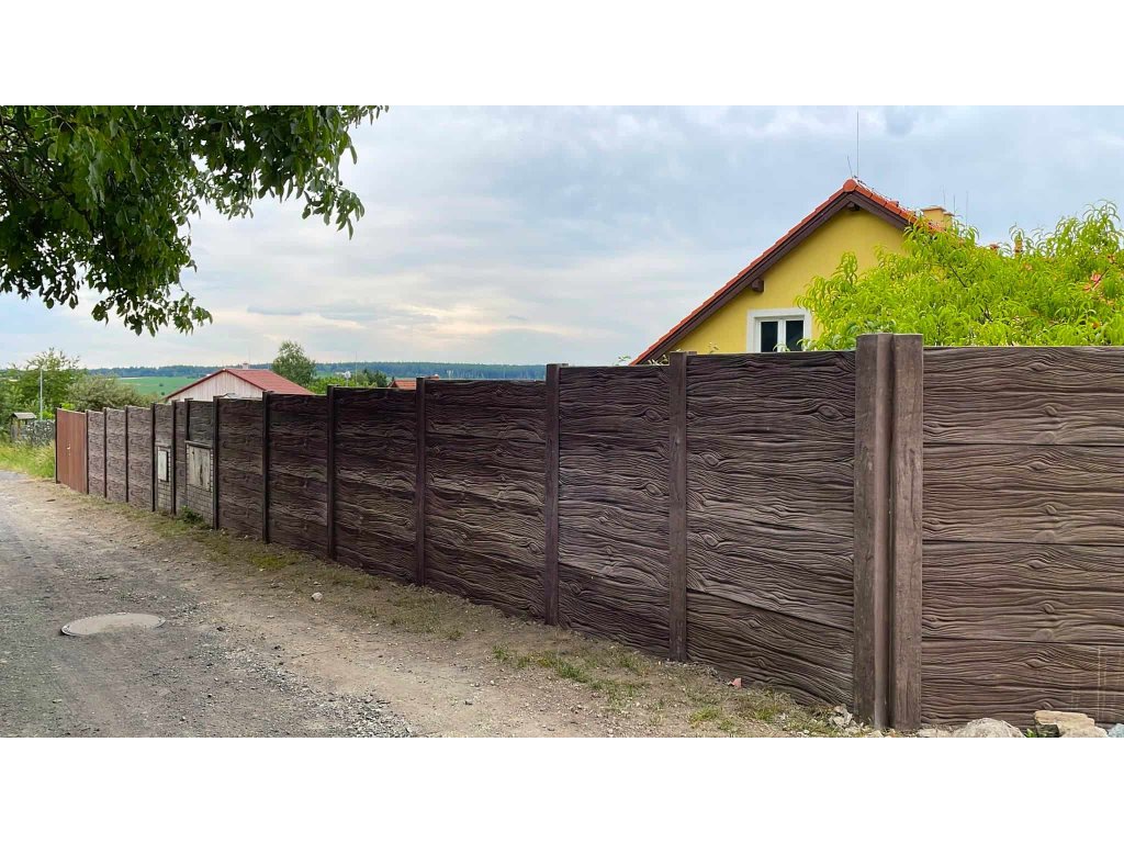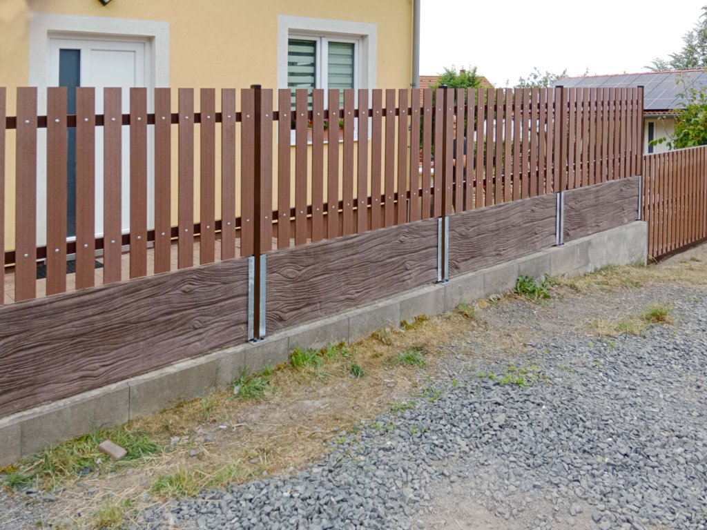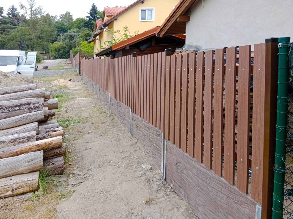 Nedaleko města Rakovník jsme montovali plot z betonových desek s dekorem dřevo a WPC plotovek.