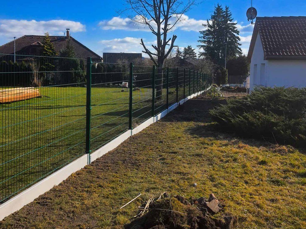 U Karlových Varů jsme montovali plot z 2D plotových panelů a z podhrabových desek.