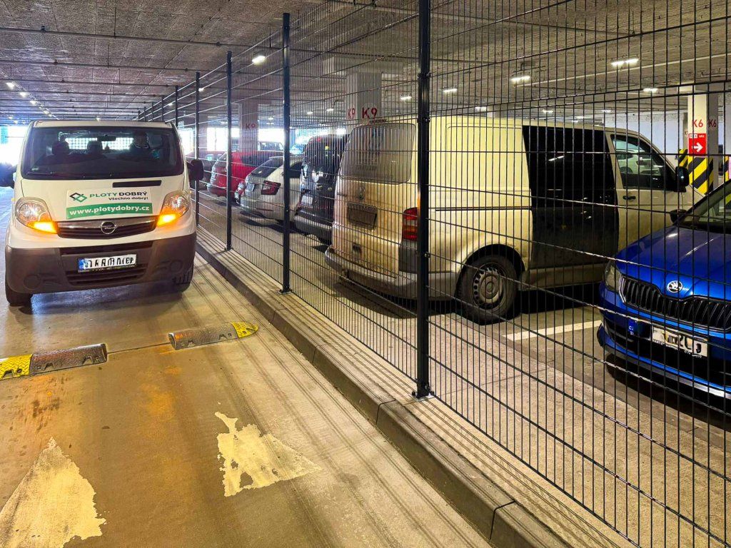 V Praze jsme montovali ve vnitřních prostorách 2D plotové panely ukotvené na patky.