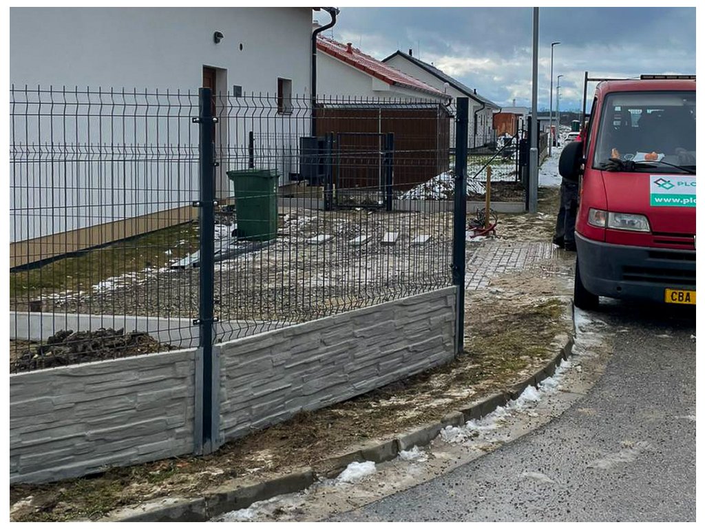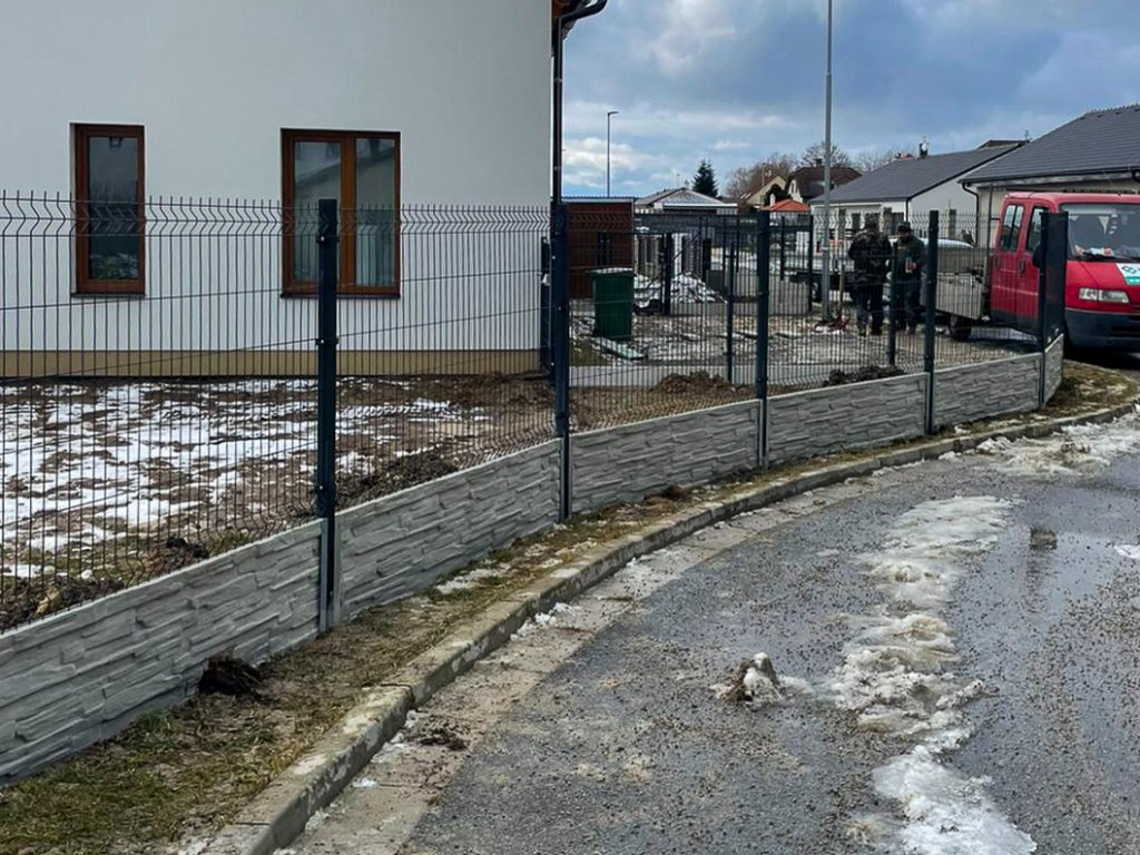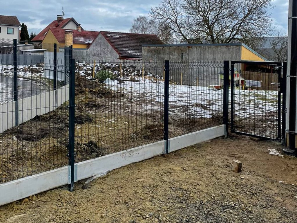 V Třeboni jsme montovali plot z 3D plotových panelů. Na části oplocení byly pod plotové panely nainstalovány betonové plotové desky se vzorem, na části pak klasické podhrabové desky.
