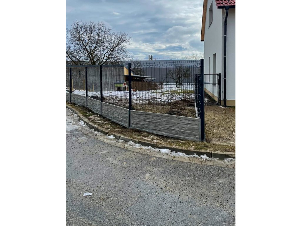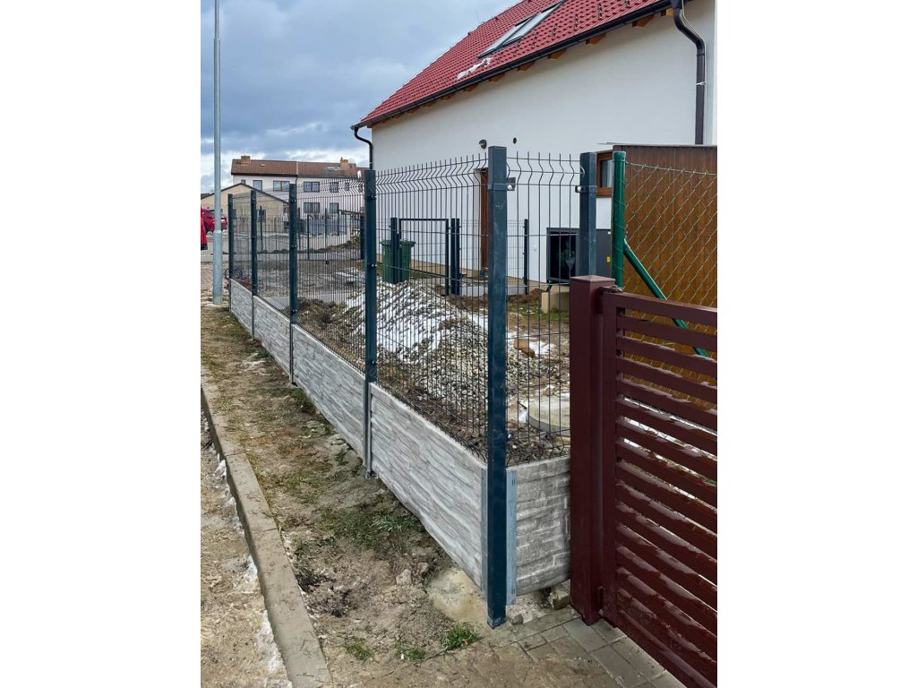 3D plotové panely, sloupky, betonové plotové desky, podhrabové desky, držáky podhrabových desek 50 cm, 20 cm, branka.