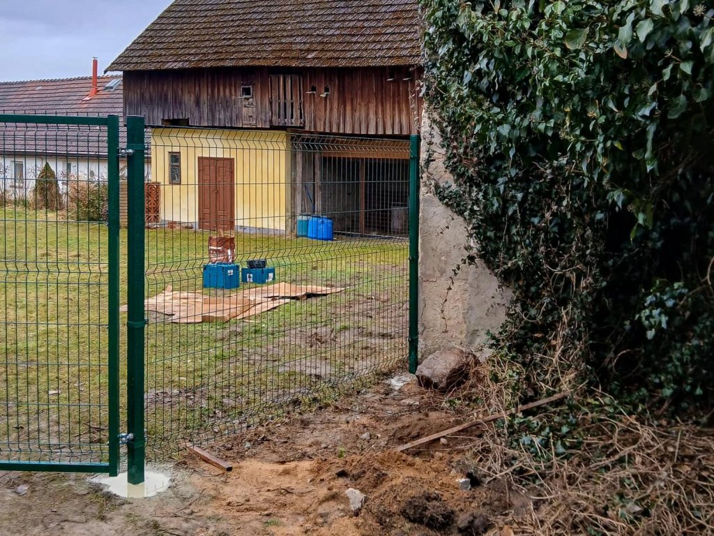 U Jindřichova Hradce jsme montovali plot z 3D plotových panelů. Součástí oplocení je také branka.