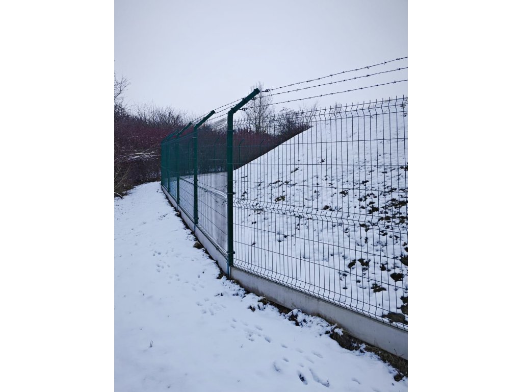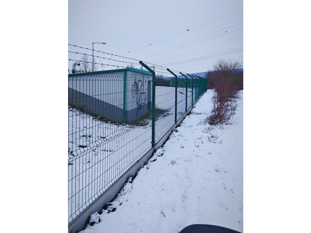 V Mladé Boleslavi jsme montovali plot z 3D plotových panelů. Do vrchní části sloupků jsme namontovali šikmé prodloužení sloupků, na které jsme následně umístili tři řady ostnatého drátu. Jednalo se o oplocení opravdu velkého areálu - bylo použito 156 plotových panelů.