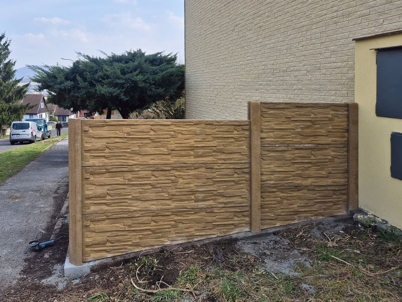 Realizace – betonový plot a plotovky Pilwood-Sand | Děčín
