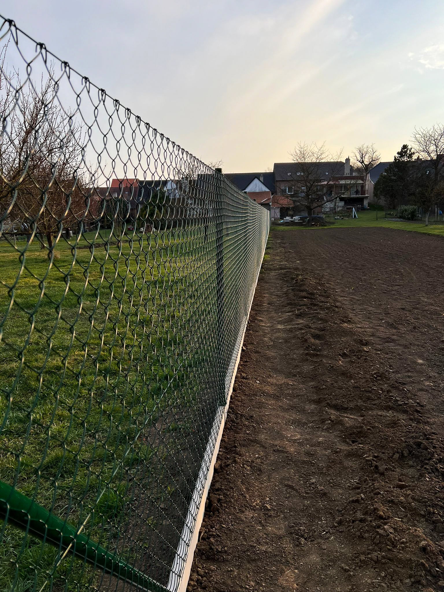 V Násedlovicích, v okrese Hodonín, jsme montovali plot ze čtyřhranného pletiva a podhrabových desek.