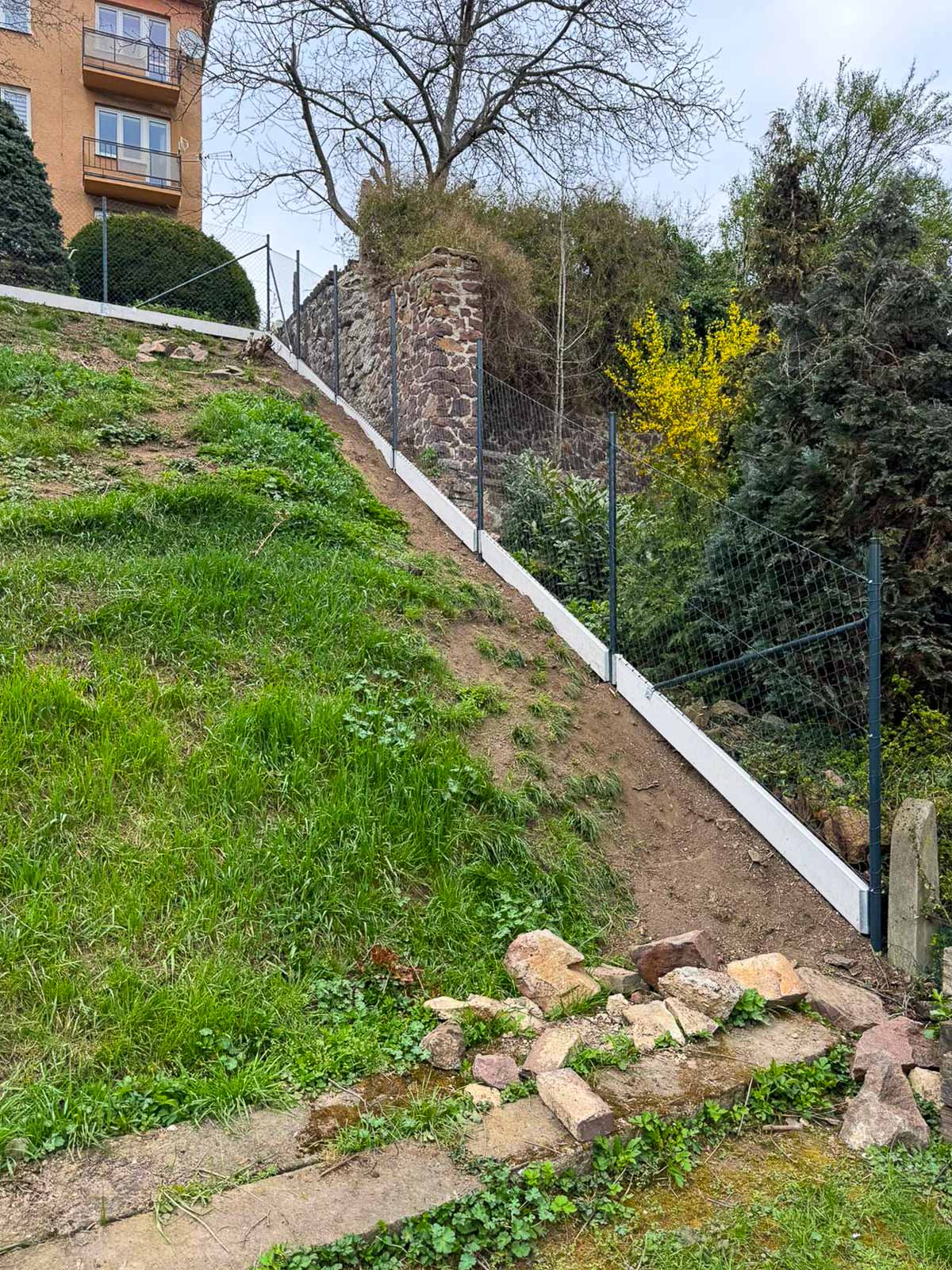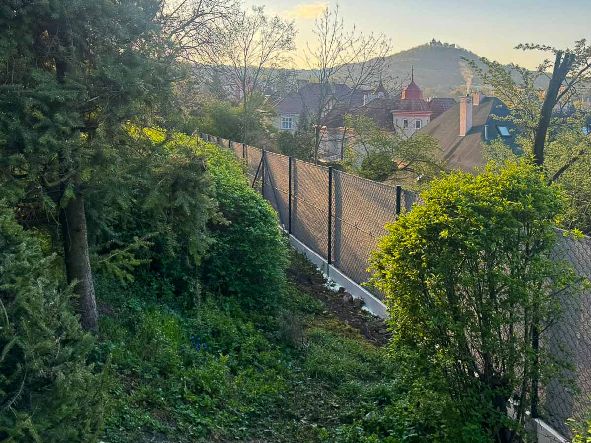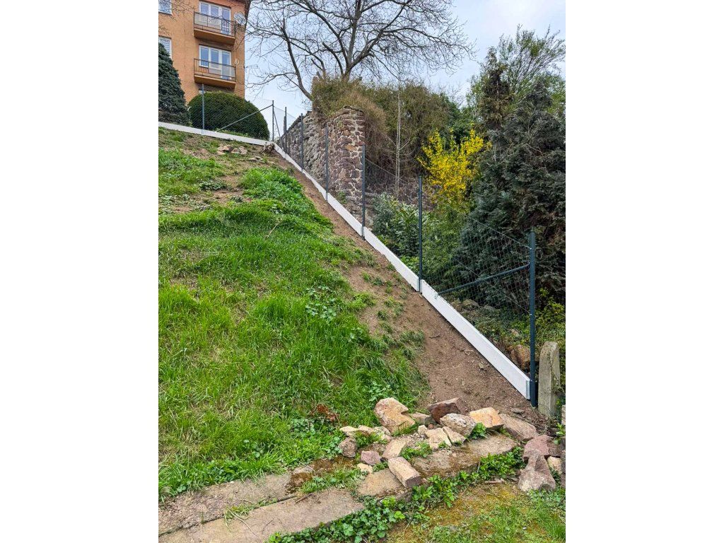 Realizace – čtyřhranné pletivo a podhrabové desky v prudkém svahu | Teplice