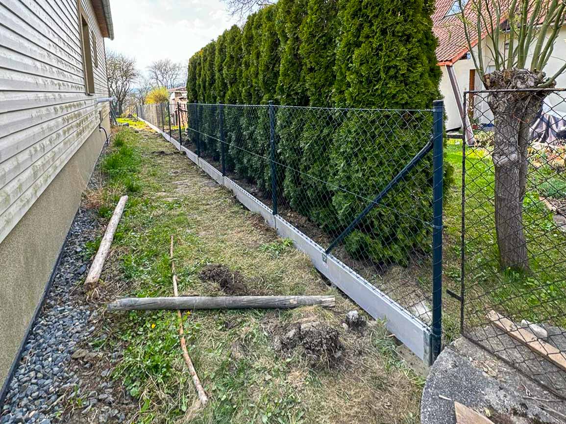 Ve Valašském Meziříčí jsme montovali plot ze čtyřhranného pletiva a podhrabových desek.
