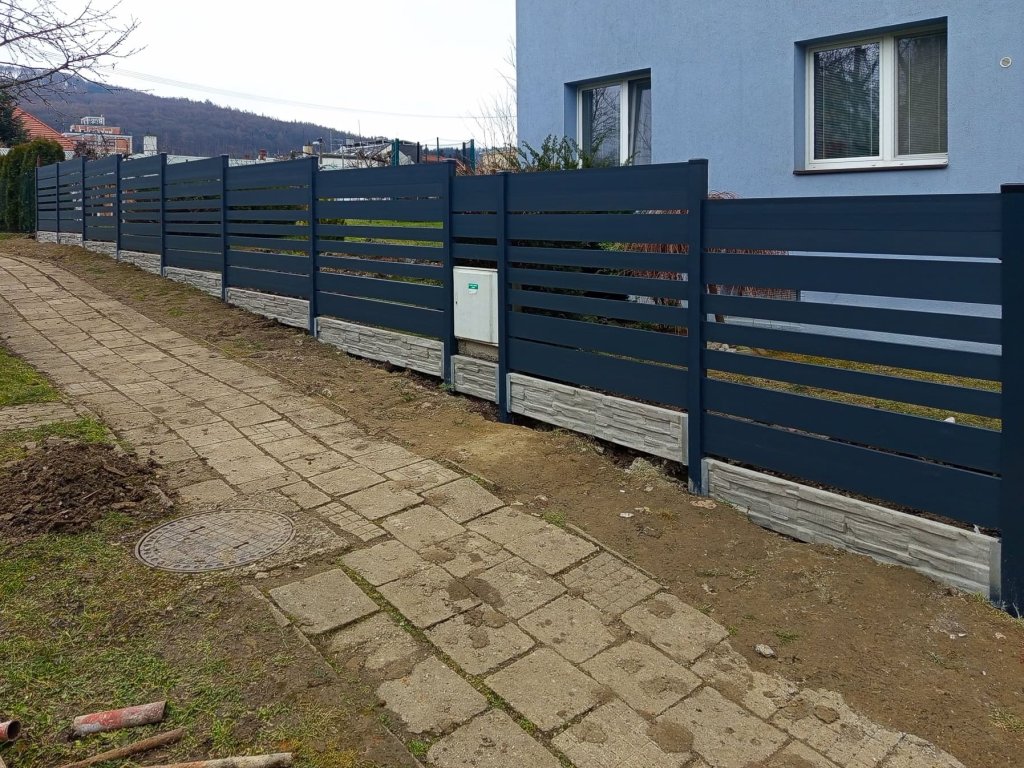 Ve Zlíně jsme montovali plot z hliníkových lamel a betonových plotových desek.