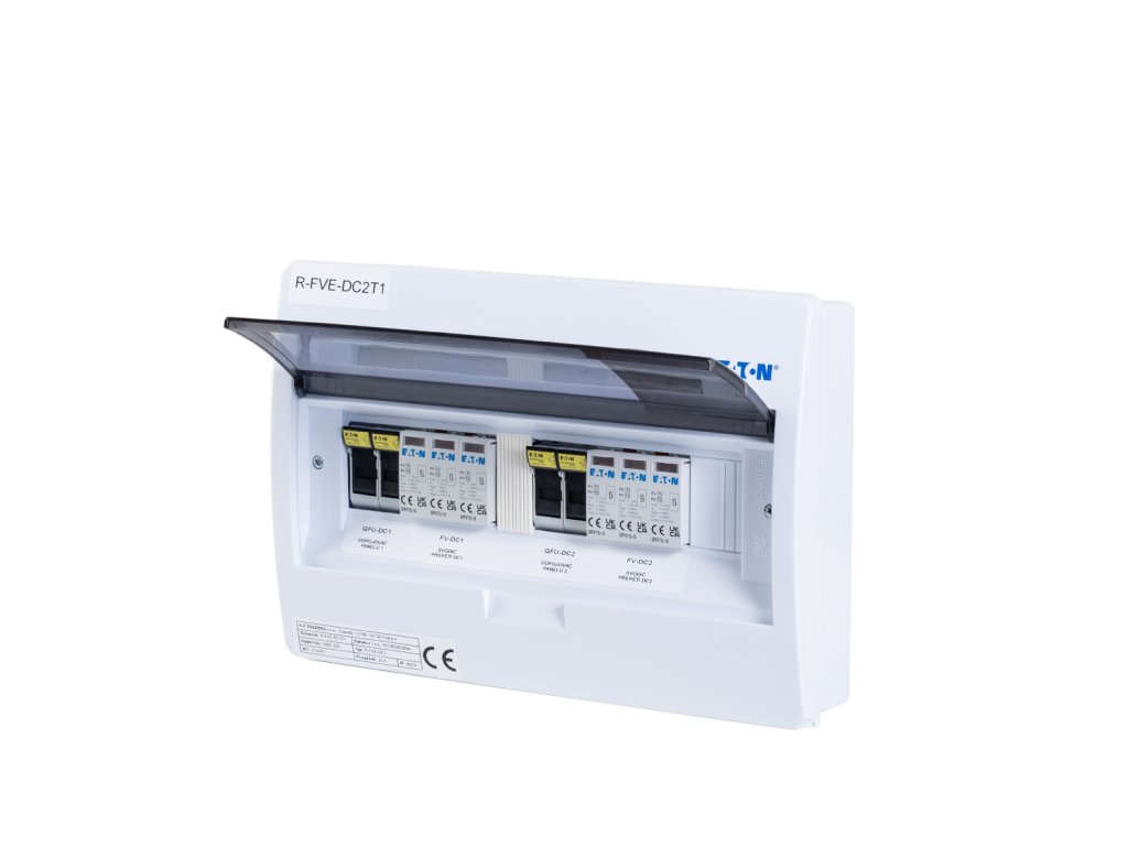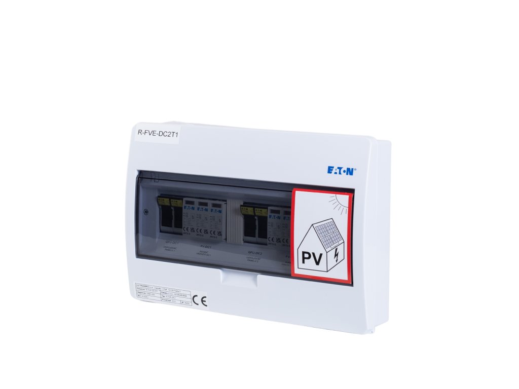 DC rozváděč určený pro montáž na zeď, IP40/20 sloužící jako vstupní rozváděč od fotovoltaických panelů (ke střídači) pro celé portfolio fotovoltaických elektráren. Zejména při použití ostatních rozváděčů taktéž EATON BC-O-1/12-ECO.