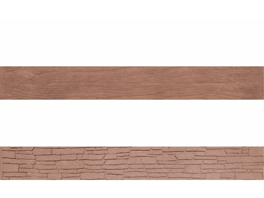 Plotová deska betonová 200x25 cm, oboustranná, vzor dřevo (z jedné strany) a skládaný kámen (z druhé strany, tzv. "razítko")