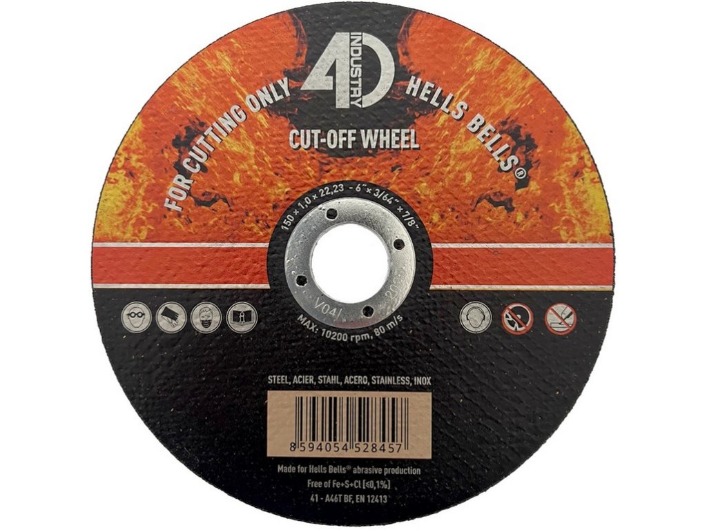 Kotouč řezný na ocel a nerez 150 x 1,0 x 22,2 mm. rozměry: 150 x 1,0 x 22,2 mm Řezné kotouče Hells Bells s bakelitovým pojivem jsou vyrobeny z prémiového korundového zrna, které je zárukou rychlého řezu a dlouhé životnosti. Neobsahují stopy železa, chlóru a síry. Jsou určeny pro řezání uhlíkových ocelí, konstrukčních ocelí a nerezových ocelí.Další informace