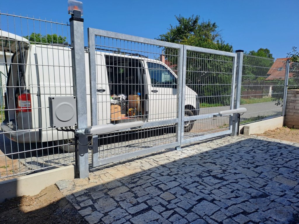 Kompletní sada pro dvoukřídlé brány je určena pro instalaci na křídla do max. šířky 2 × 2 m a hmotnosti 2 × 200 kg. Výhodou této sady je samosvorný pohon s napájením 230 V.