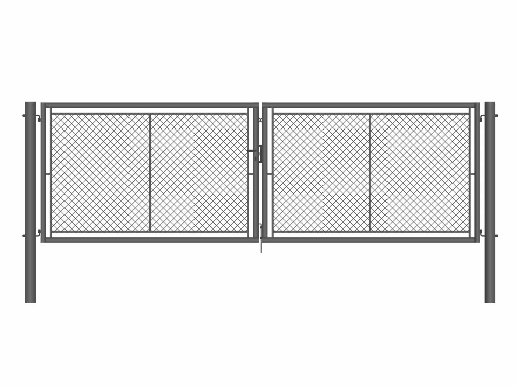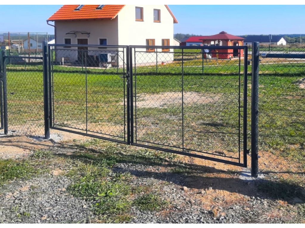 Brána zahradní dvoukřídlá antracit, výška 155 x 360 cm, universal, s výplní klasického pletiva